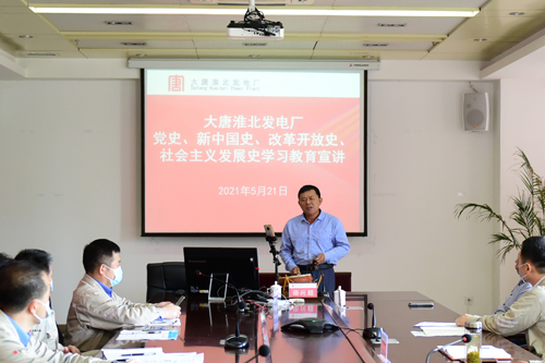 中國電力網(wǎng)訊 為深化“黨史、新中國史、改革開放史和社會主義發(fā)展史”學(xué)習(xí)教育,推動黨員干部學(xué)史明理、學(xué)史增信、學(xué)史崇德、學(xué)史力行,5月21日,大唐淮北發(fā)電廠邀請淮北市“四史”宣講團(tuán)走進(jìn)企業(yè),幫助教育引導(dǎo)黨員干部全面了解“四史”,學(xué)會歷史思維,培養(yǎng)歷史眼光,增強(qiáng)歷史擔(dān)當(dāng),進(jìn)一步堅定理想信念,激發(fā)干事創(chuàng)業(yè)熱情。