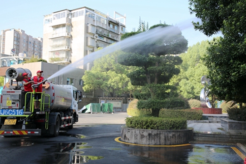 “水管已接好,可以放水了。”“前面的人把槍管扶好,水來了!”“沒想到消防水管這么重,還好我們人多力量大。”……噴射的水柱,在陽光的照射下猶如一道道彩虹,為久旱的花草樹木帶去生機和力量。志愿者們分成三組,一組拉著長長的消防水管,其他兩組分別操控灑水車、霧炮車的噴水槍,同時戰(zhàn)斗,分區(qū)澆灌,按照“細澆慢灌、澆足澆透”的原則,頂著烈日,熱火朝天地對綠化帶、草坪以及樹木等進行灌溉,顧不上濕透的全身和因長時間托舉水管水槍而早已酸痛的胳膊,只為守護溫馨、優(yōu)美的生活環(huán)境。經(jīng)過奮戰(zhàn),看著濕潤的草地和舒展生機的植被,大家浸透著汗水的臉上露出了欣慰的笑容。