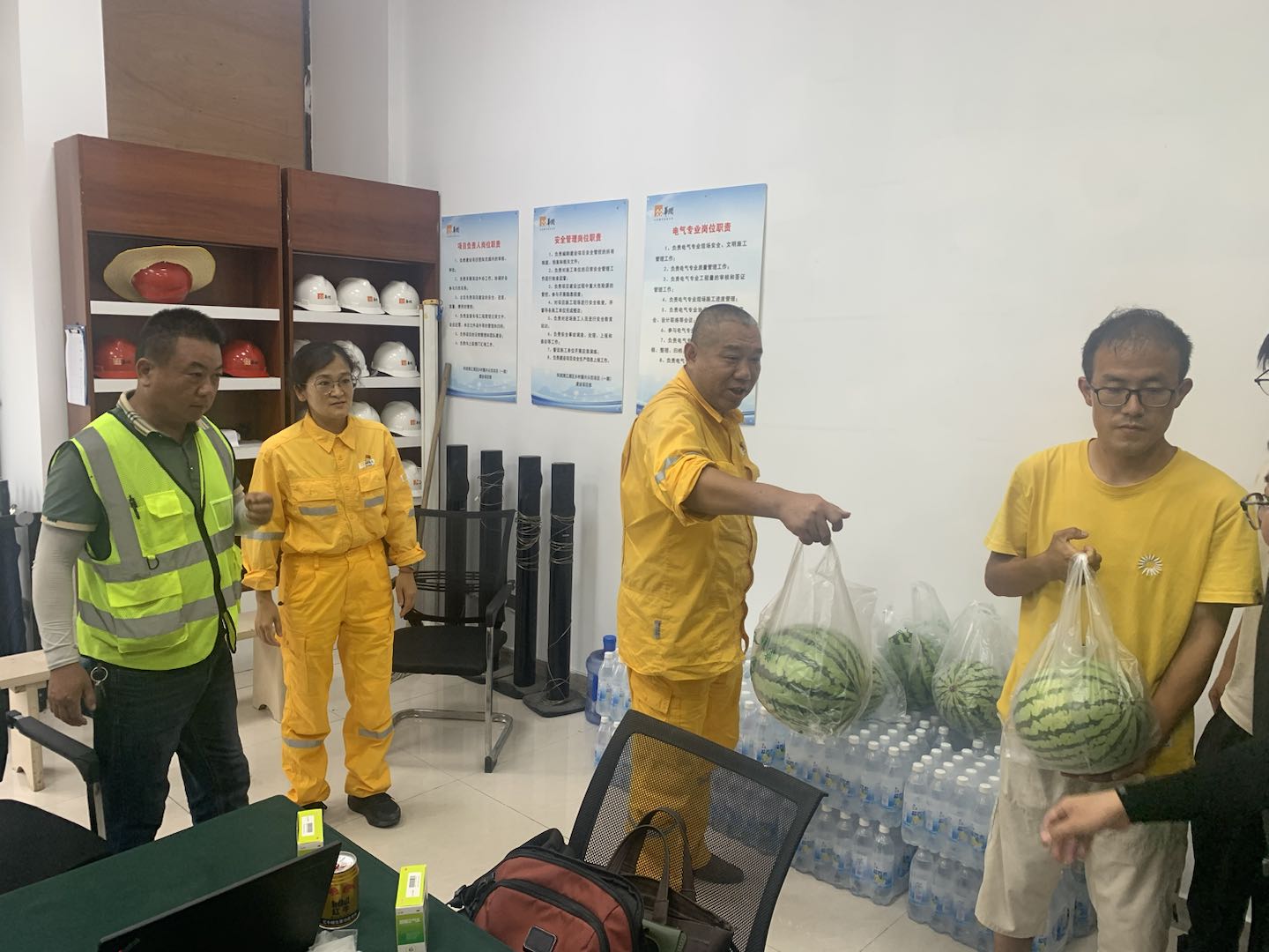 黨支部成員攜帶著精心準備的清涼物資,諸如鹽汽水、水果以及防暑降溫藥品,逐一將物資送到了清江浦每一位施工單位人員的手中。物資雖然微不足道,但卻表達了黨組織對一線工作人員的誠摯問候和關心。