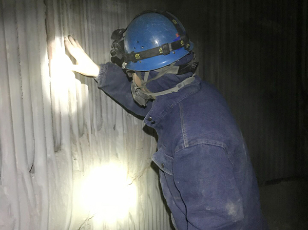 鍋爐受熱面防磨防爆是機組降非停工作的重頭戲,檢修期間張曉斌帶領鍋爐防磨防爆小組仔細治理鍋爐“四管”。他勤用手摸、勤用耳聽、勤用眼觀、勤用腦分析,逐項對“水冷壁、省煤器、過熱器、再熱器、頂棚”展開排查,不放過任何一個疑點,關健部位更是細中求細;他勤于學習,勤于總結,對爐管結構分布圖了然于胸,對易發(fā)生磨損部位、吹損、拉裂、水冷壁高溫腐蝕等重點部位進行分類統(tǒng)計,記錄留存照片、數(shù)據(jù),通過歷次檢查結果分析判斷劣化趨勢,預判管道壽命,制定對應措施。