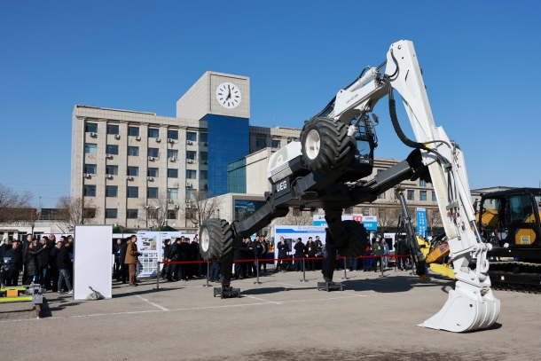 圖為應(yīng)急救援設(shè)備“鋼鐵螳螂”步履式挖掘機(jī)
