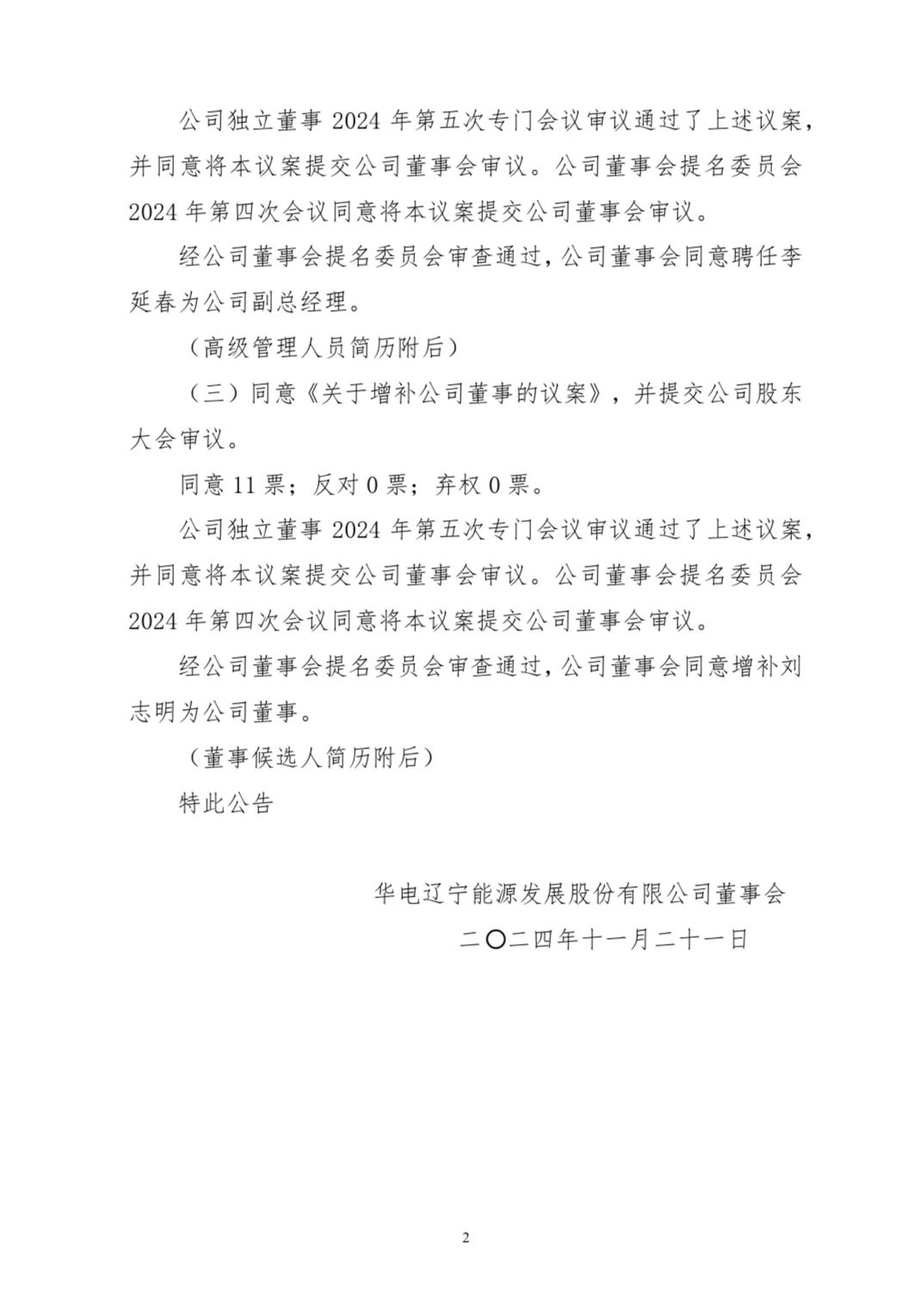 李延春任華電遼寧能源發(fā)展股份有限公司(以下簡(jiǎn)稱(chēng)“華電遼能”)副總經(jīng)理。劉志明為華電遼能董事。