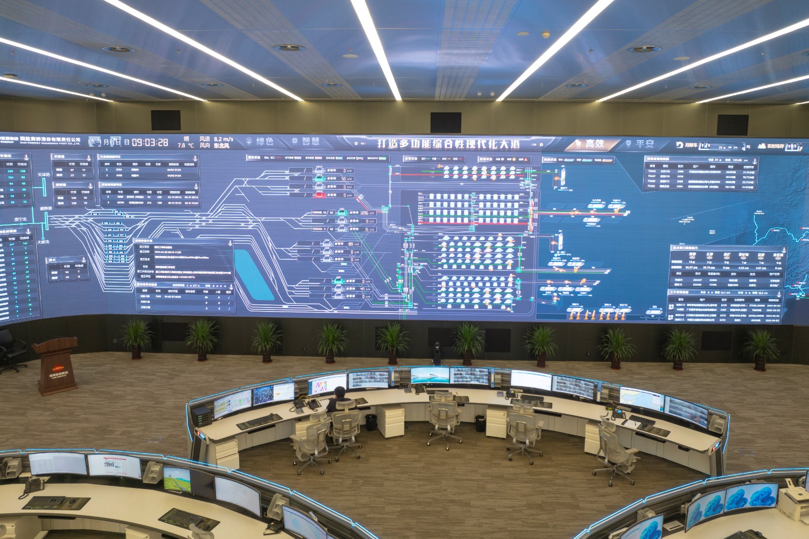 圖為黃驊港務(wù)生產(chǎn)調(diào)度大廳