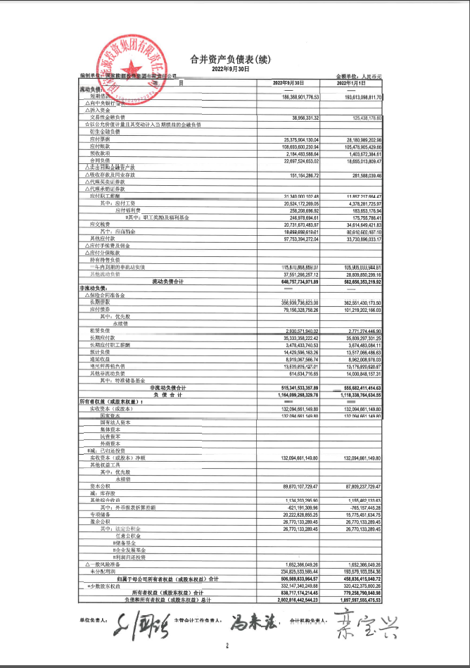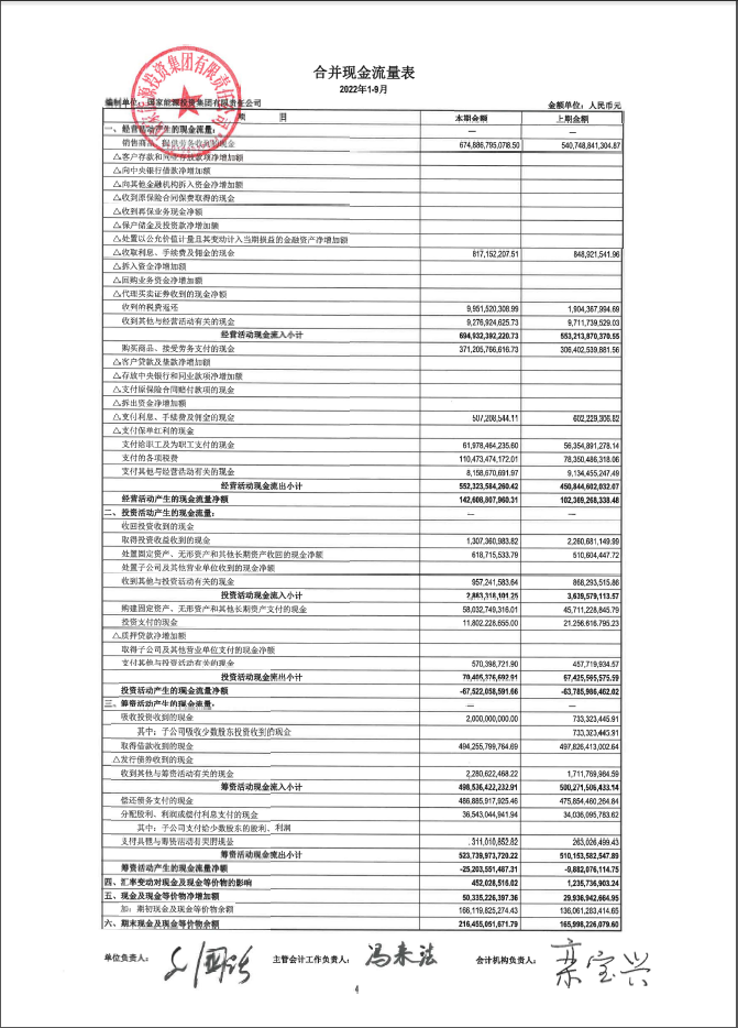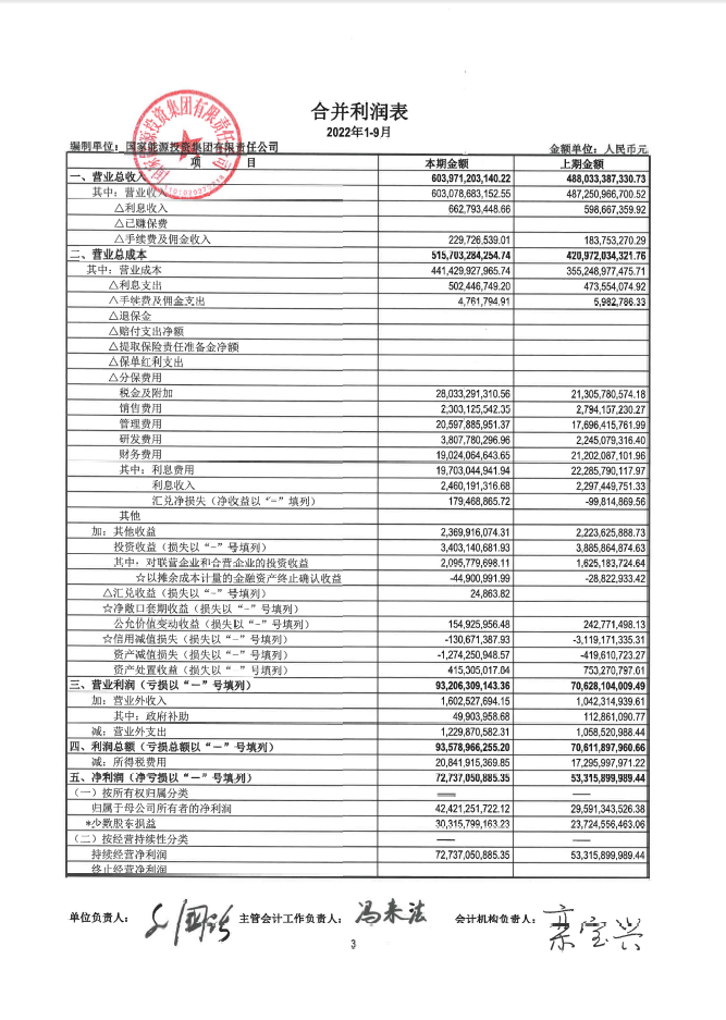 國(guó)家能源集團(tuán)2022年三季財(cái)務(wù)報(bào)表