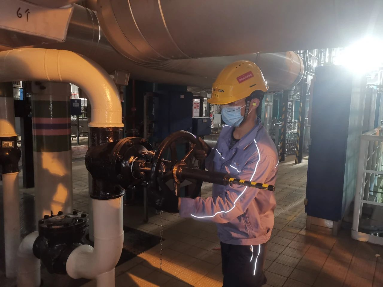 大亞灣核電運行三部現(xiàn)場操作員王景瑞對發(fā)電機供氫閥進行檢查