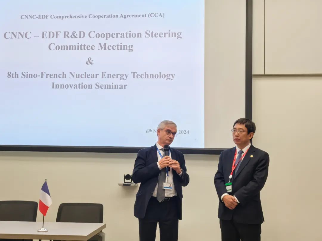 11月6日,第八屆中法核能技術(shù)創(chuàng)新研討會暨中核集團(tuán)-法國電力集團(tuán)全面合作協(xié)議(CCA)研發(fā)指導(dǎo)委員會在巴黎成功召開,中核集團(tuán)副總經(jīng)理辛鋒,法國電力集團(tuán)(EDF)高級執(zhí)行副總裁、首席技術(shù)官、研發(fā)部總裁Bernard SALHA出席會議并致辭。