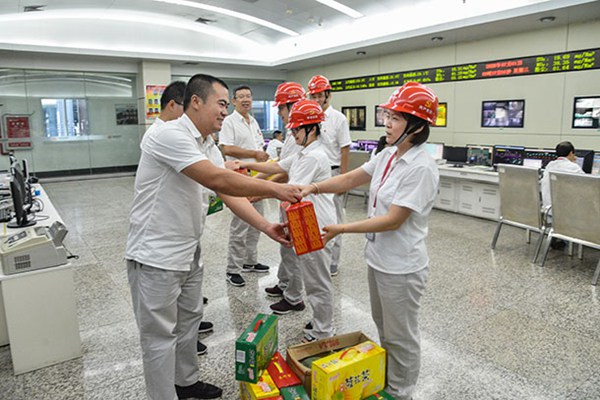 炎炎烈日下,對(duì)戶外作業(yè)的員工來(lái)說(shuō)是個(gè)嚴(yán)峻的考驗(yàn),志愿者們來(lái)到接卸煤現(xiàn)場(chǎng)、集控室、檢修現(xiàn)場(chǎng)等工作場(chǎng)所,為一線工作人員送上了西瓜、涼茶等清涼物品,并叮囑他們既要做好安全生產(chǎn)工作,更要注意防暑降溫,在烈日下工作要做好防護(hù)措施,多喝水,合理休息,防止中暑。聲聲的叮囑和問(wèn)候,使堅(jiān)守在高溫下工作的員工倍感絲絲清涼,也給他們帶來(lái)了精神關(guān)懷和工作動(dòng)力。