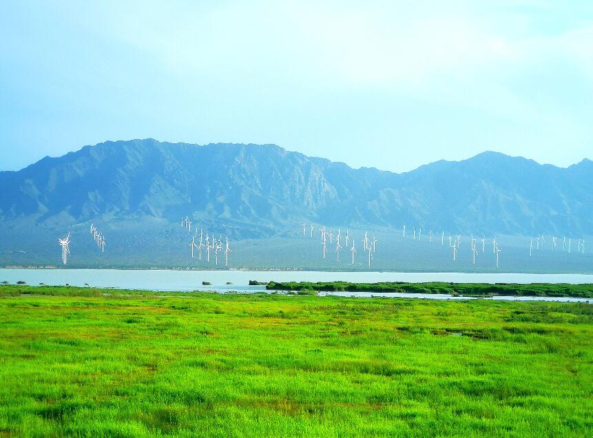 濕地旁的粵水電達(dá)坂城風(fēng)電場(chǎng)