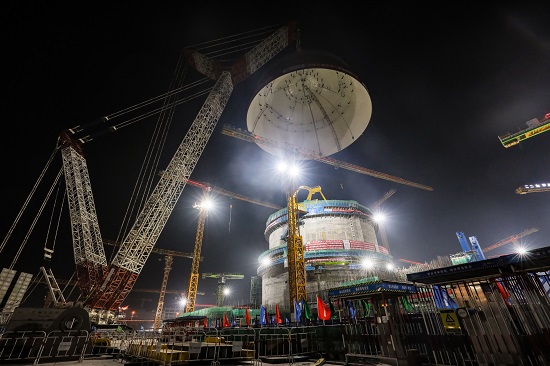 2月21日,華能海南昌江核電二期工程3號機組內(nèi)穹頂?shù)跹b就位,標志著該機組從土建施工階段全面轉(zhuǎn)入安裝階段。