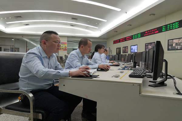 集控室,該公司運(yùn)行人員在認(rèn)真監(jiān)盤、精心操作,加強(qiáng)對(duì)機(jī)組重要參數(shù)的運(yùn)行監(jiān)控,確保機(jī)組安全、環(huán)保、經(jīng)濟(jì)運(yùn)行。