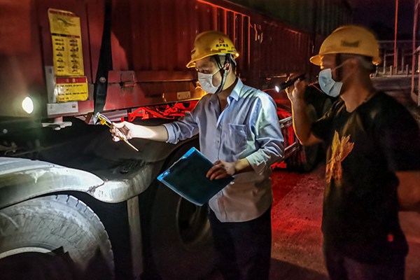 煤車入廠前,安保人員嚴(yán)把疫情防控關(guān),嚴(yán)格檢查有效的核酸檢測(cè)報(bào)告等證明,全部正常后才一一放行。