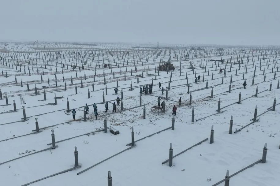正月初三,在寧夏中衛(wèi)騰格里沙漠腹地,銀裝素裹,前不久一場罕見的大雪將浩瀚沙漠裹得嚴(yán)嚴(yán)實(shí)實(shí),給項(xiàng)目施工帶來了嚴(yán)峻考驗(yàn)。