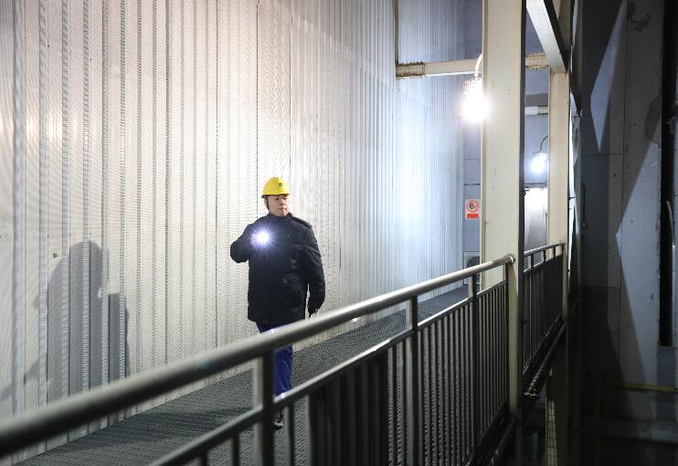 華能北京熱電廠運行部值守人員在除夕夜開展巡檢。