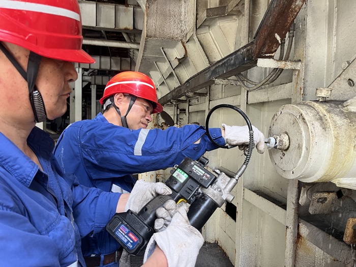 在高溫檢修現(xiàn)場(chǎng),每天都能看到檢修員工揮汗如雨,奮力拼搏的身影,設(shè)備有缺陷,機(jī)器壞了,那是不能等的,即便再炎熱,溫度再高,也要第一時(shí)間撲上去。在水泵旁、在火嘴邊、在送風(fēng)機(jī)下、在撈碴機(jī)上,檢修員工們總是一邊擦拭著汗水,一邊維修著設(shè)備,他們提出的口號(hào)是“勤消缺、精檢修、戰(zhàn)高溫、保供電”。