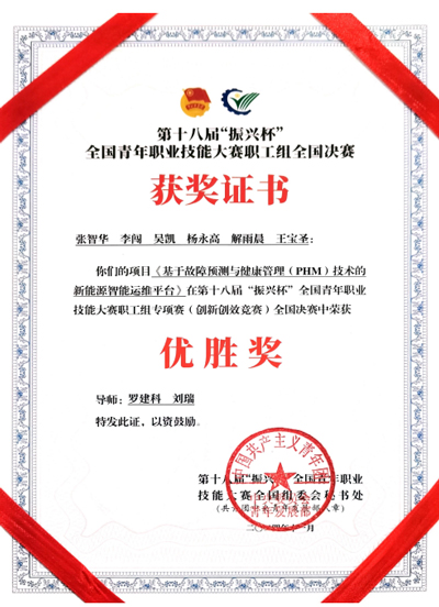 中國(guó)電力網(wǎng)訊(通訊員 解雨晨) 日前,電力運(yùn)營(yíng)君創(chuàng)科技申報(bào)的《基于故障預(yù)測(cè)與健康管理(PHM)技術(shù)的新能源智能運(yùn)維平臺(tái)》項(xiàng)目斬獲第十八屆“振興杯”全國(guó)青年職業(yè)技能大賽優(yōu)勝獎(jiǎng)。