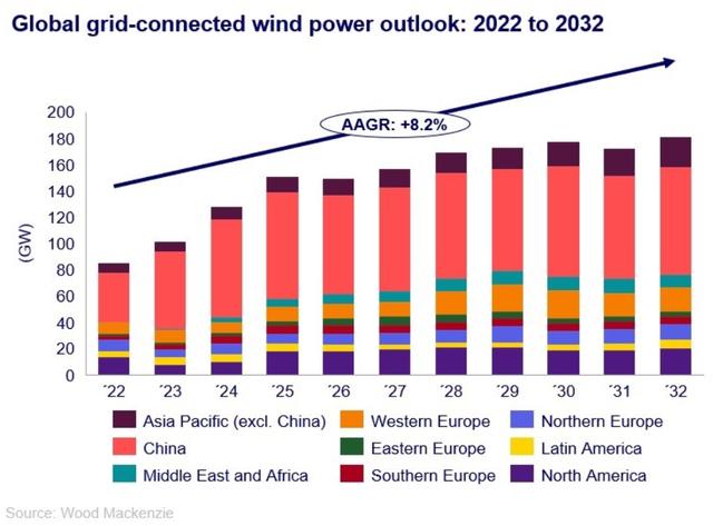 咨詢公司伍德麥肯茲(Wood Mackenzie)在本周二表示,由于美國海上風(fēng)電行業(yè)的財務(wù)困難,以及中國對于風(fēng)電項目的審批和裝機進展緩慢,未來十年,全球風(fēng)電行業(yè)新增裝機容量將低于此前的預(yù)期。
