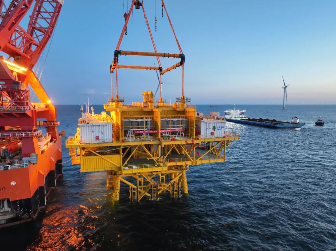 8月23日18時(shí)58分,國家電投山東能源投資建設(shè)的山東半島南U1場址海上風(fēng)電項(xiàng)目海上升壓站上部組塊與導(dǎo)管架精準(zhǔn)對(duì)接,標(biāo)志著國內(nèi)單體容量最大、集電線路電壓等級(jí)最高的模塊化預(yù)裝式海上升壓站吊裝順利完成。