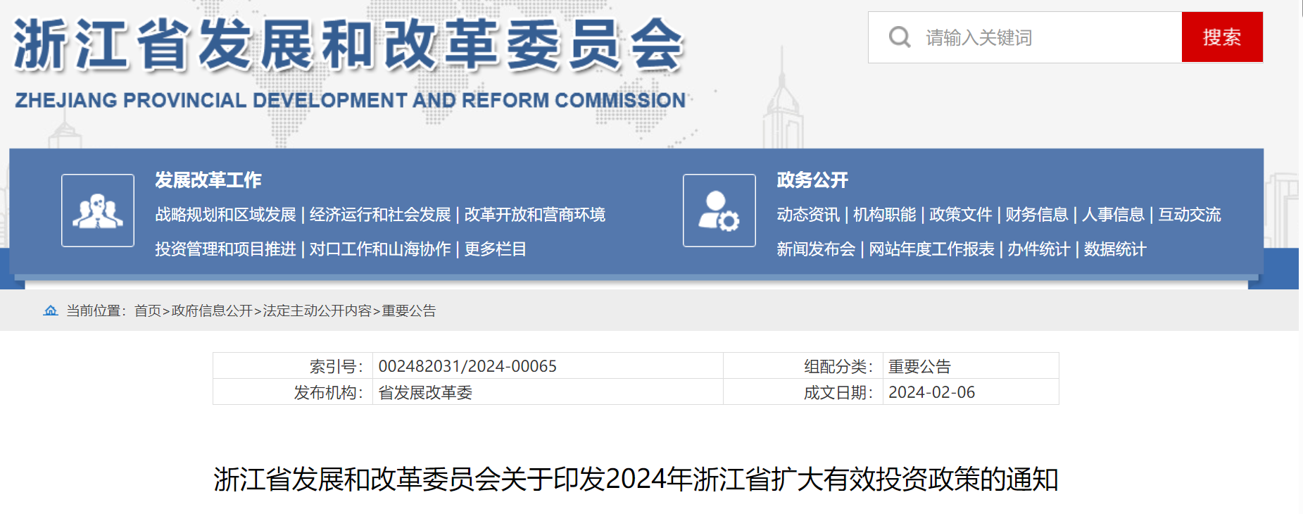 2月18日,浙江省發(fā)展和改革委員會發(fā)布《關于印發(fā)2024年浙江省擴大有效投資政策的通知》。