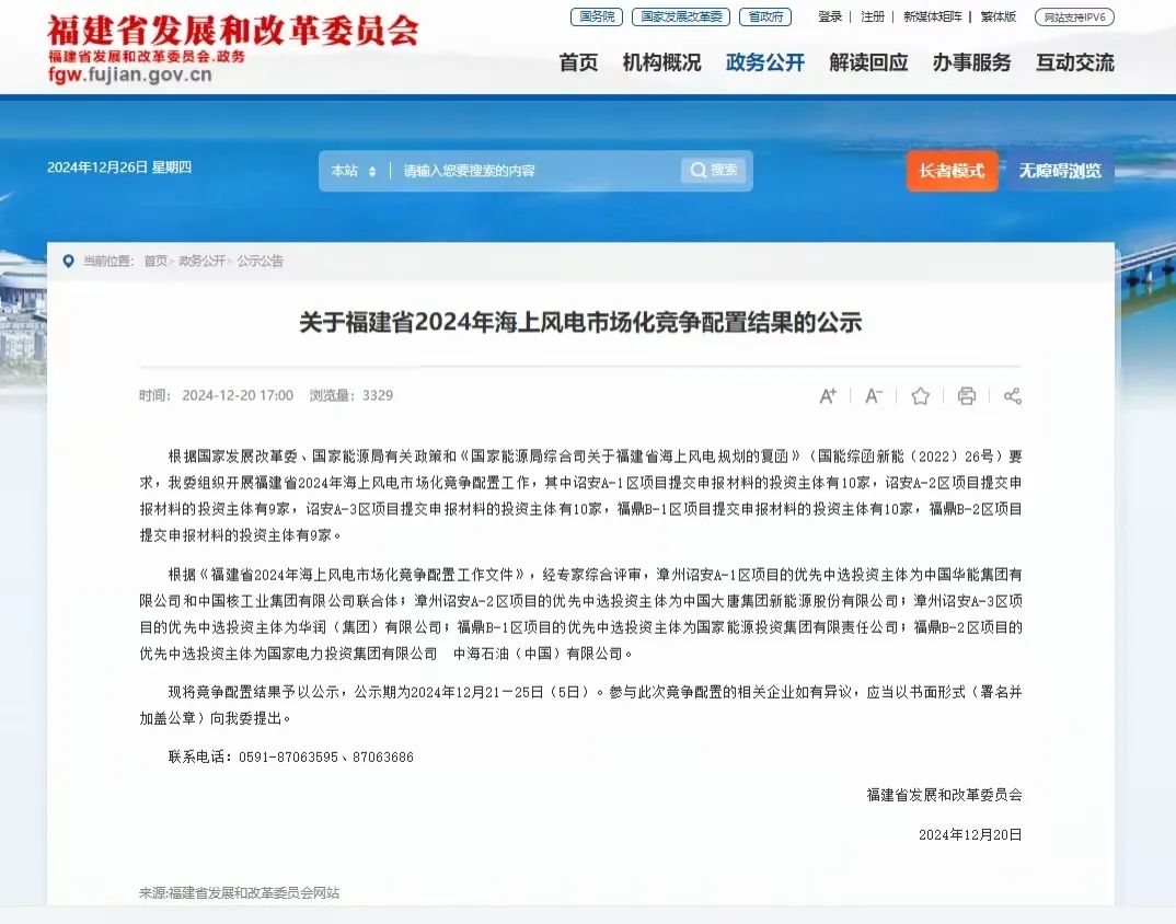 12月26日,國家電投集團(tuán)福建電力有限公司在福建省2024年海上風(fēng)電市場化競爭配置工作中,與中海石油(中國)有限公司共同取得福鼎B-2區(qū)70萬千瓦海上風(fēng)電競配指標(biāo)。