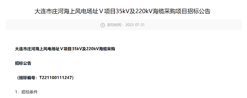 交貨計劃:賣方應保證35kV海纜2023年9月30日前具備交貨條件,供貨需滿足現(xiàn)場施工進度要求,具體時間、批次及數(shù)量以買方通知為準;220kV海纜2023年11月15日前具備交貨條件,具體時間以買方通知為準;220kV陸纜2023年9月30日前具備交換條件,具體時間以買方通知為準。