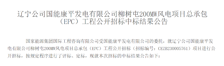 國能康平發(fā)電有限公司柳樹屯200MW風(fēng)電項(xiàng)目總裝機(jī)容量為200MW,安裝43臺(tái)單機(jī)容量為4550kW和1臺(tái)單機(jī)容量為4350kW的風(fēng)電機(jī)組,所選機(jī)型單位千瓦掃風(fēng)面積不低于6.2m2/kW,葉輪直徑不低于190m,輪轂高度140m,新建一座220kV升壓站。計(jì)劃工期:2023年7月31日-2024年6月30日。
