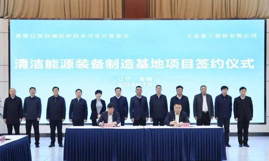 1月7日,大金重工股份有限公司與盤錦市遼濱沿海經(jīng)開區(qū)管委會舉行清潔能源裝備制造基地項目簽約儀式。