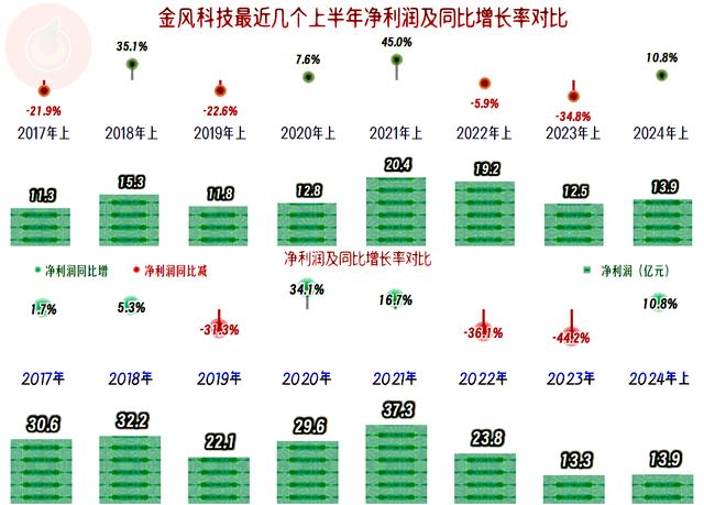 凈利潤的波動就更大一些了,但年度和半年度的峰值都是2021年創(chuàng)下的,這比營收峰值晚了一年。2024年雖然有同比10.8%的增長,但這是在連續(xù)兩年下跌基礎(chǔ)上的反彈,離峰值年份還有較大的距離。