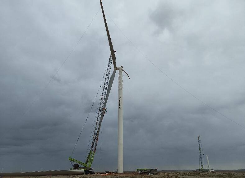玉門麻黃灘項目位于甘肅省酒泉地區(qū)玉門市,玉門境內(nèi)風(fēng)資源十分豐富,但是長期的大風(fēng)天氣給風(fēng)機吊裝作業(yè)帶來了不小的困難。為了克服天氣原因?qū)Φ跹b進度的影響,項目部每日對照玉門天氣預(yù)報及風(fēng)功率預(yù)測情況,統(tǒng)籌部署現(xiàn)場施工作業(yè),積極把握施工的窗口期,持續(xù)優(yōu)化施工組織,反復(fù)研究吊裝方案,攻堅克難,高效推進風(fēng)機吊裝工作。