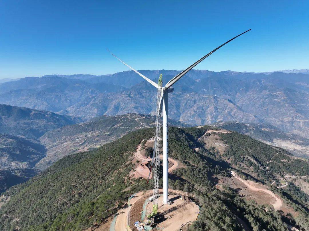 當(dāng)前正值風(fēng)季,工程建設(shè)面臨吊裝難度大、風(fēng)險(xiǎn)高和有效施工窗口期極短等重重困難。風(fēng)電機(jī)組設(shè)備體型巨大,卻要在狹小的山頂平臺(tái)上完成組裝。