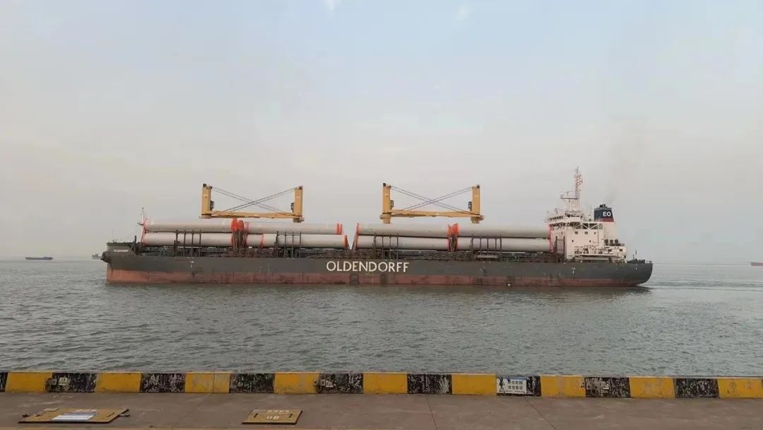 本批次發(fā)運的15套、75段塔筒,由國際知名的散雜貨遠洋運輸公司“OLDENDORF”船公司承運,將歷時近一個月直接運抵澳大利亞,交付至GE公司。該批次15套風(fēng)電機組投運后,每年可以提供約5億度的清潔電力,滿足當(dāng)?shù)丶s10萬戶家庭1年的用電量。