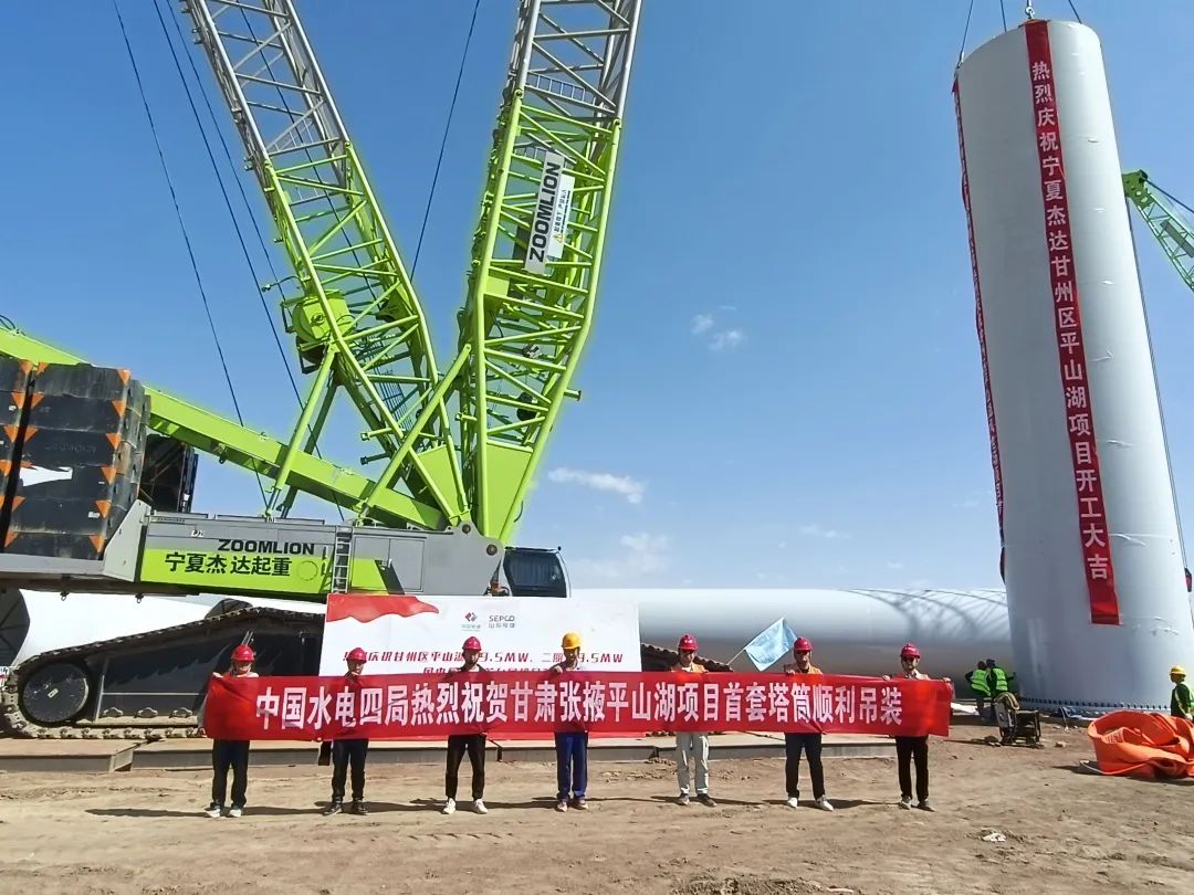 7月31日,由中國水電四局酒泉新能源公司承制肅張掖平山湖項目首套塔筒順利完成吊裝。