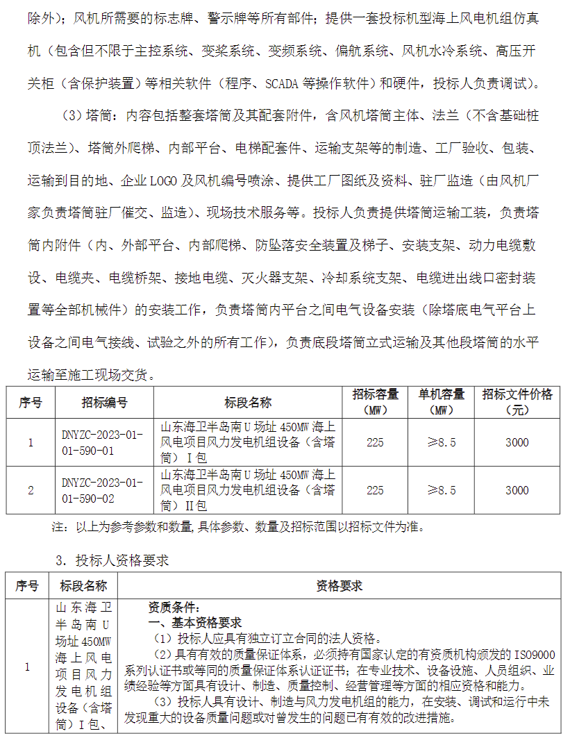 國(guó)家電投450MW海上風(fēng)電項(xiàng)目機(jī)組采購(gòu)招標(biāo),單機(jī)要求≥8.5MW