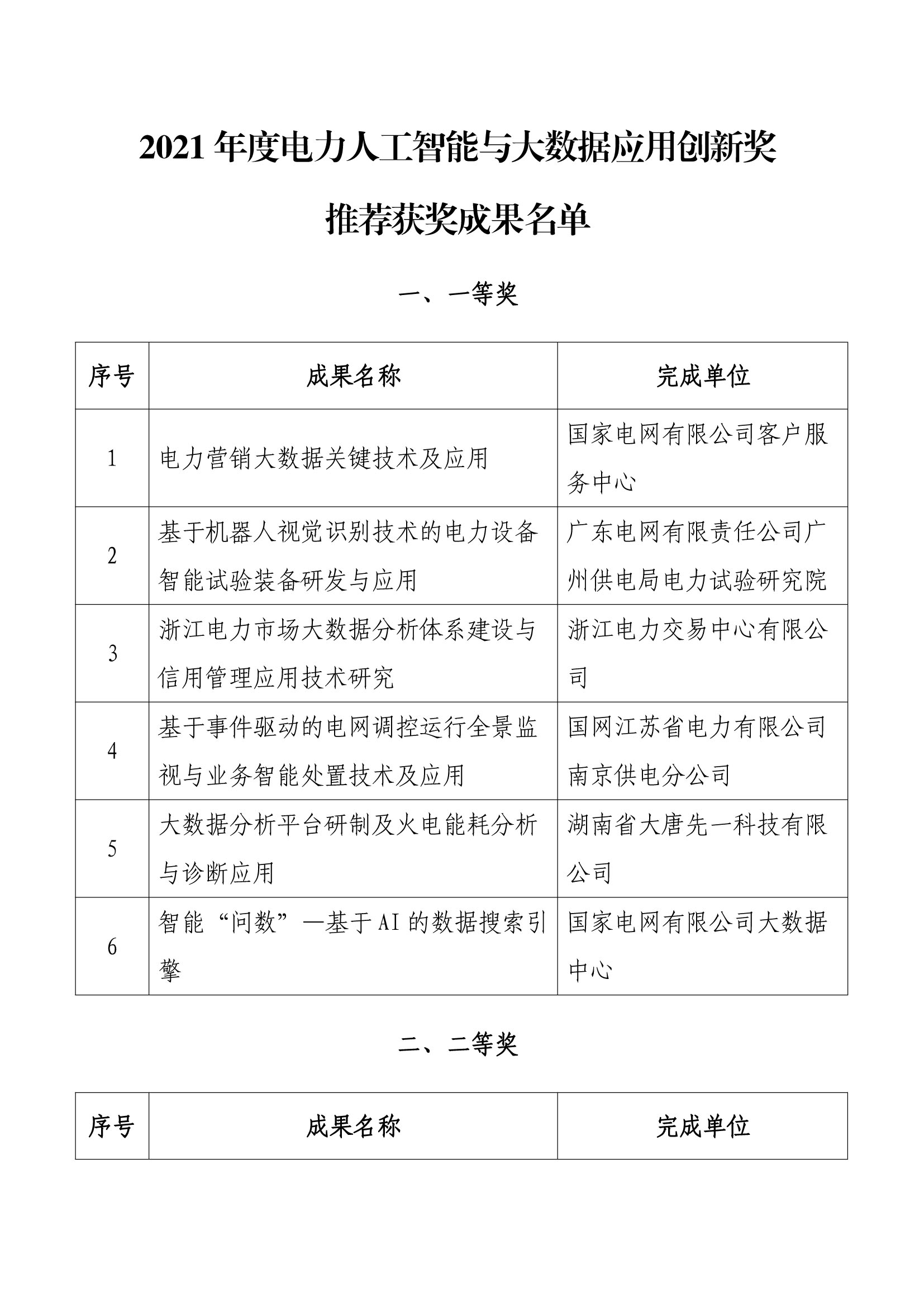 附件:2021年度電力人工智能與大數(shù)據(jù)創(chuàng)新應(yīng)用成果獎獲獎名單
