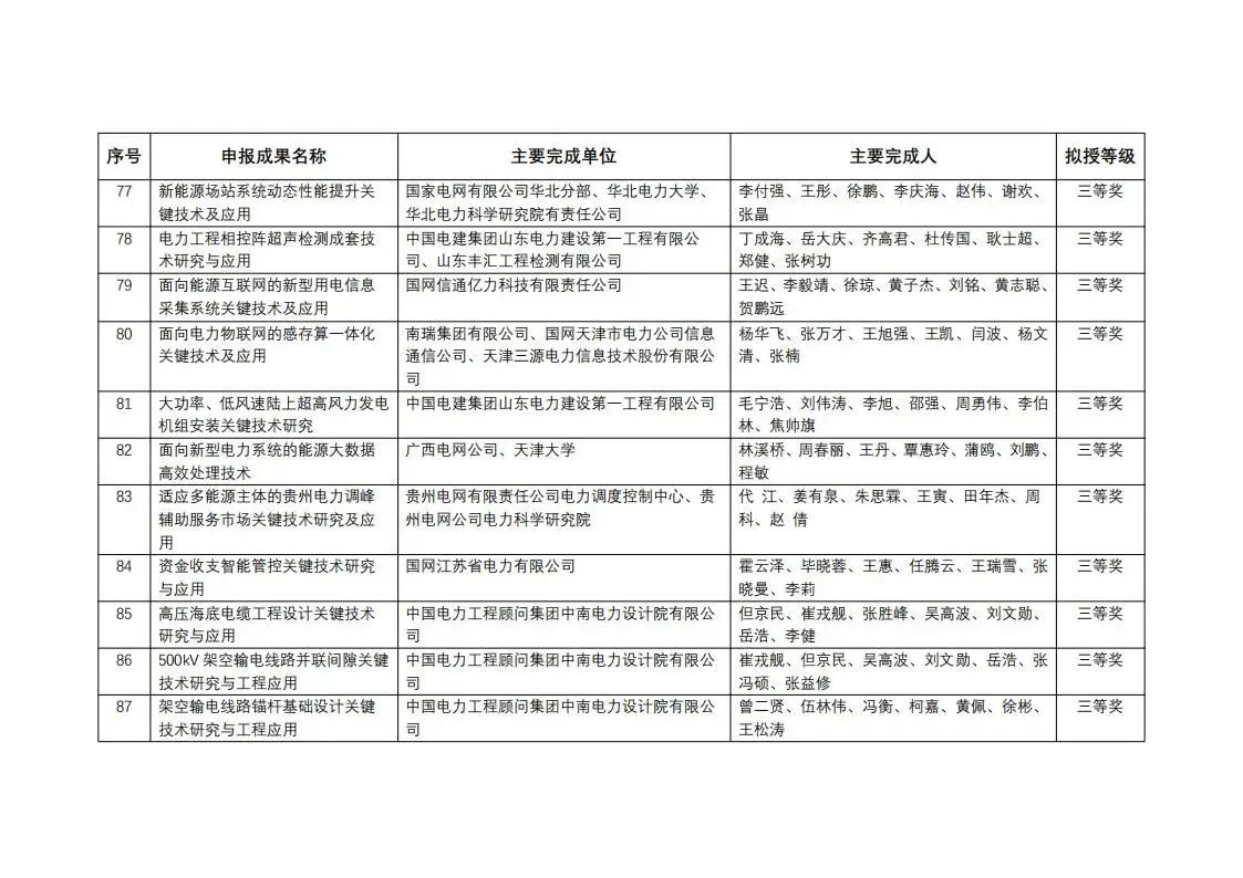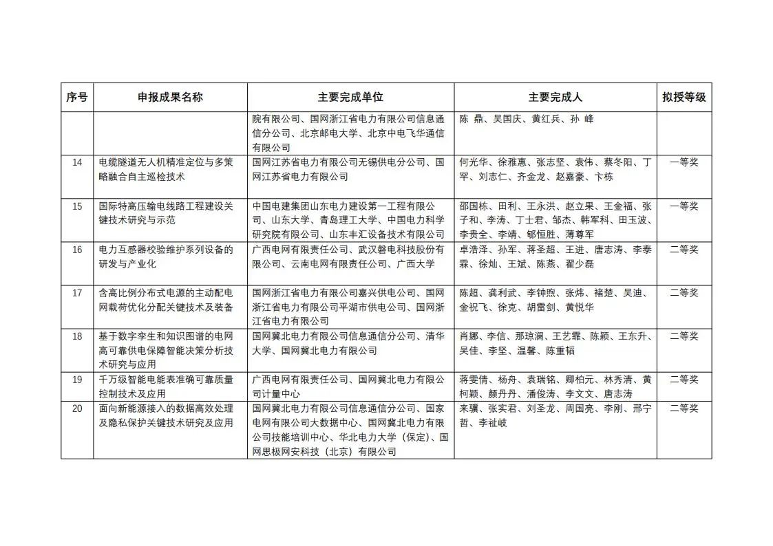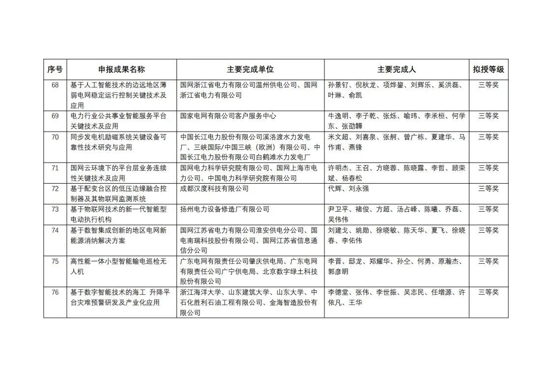 中國(guó)電力發(fā)展促進(jìn)會(huì)科學(xué)技術(shù)獎(jiǎng)2023年度擬授獎(jiǎng)成果公示