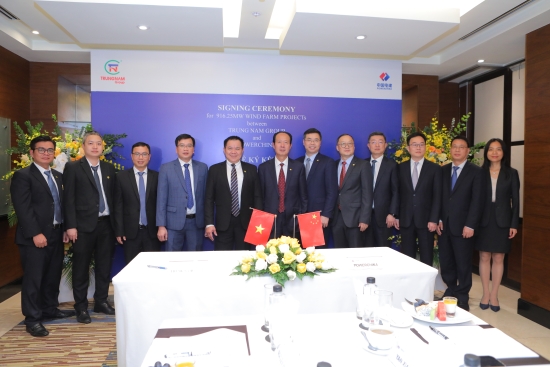 當(dāng)天下午,丁焰章與越南中南集團總經(jīng)理阮心進舉行會談,雙方就深化能源電力領(lǐng)域合作進行深入交流,并共同見證916兆瓦風(fēng)電項目群工程總承包合同簽署。