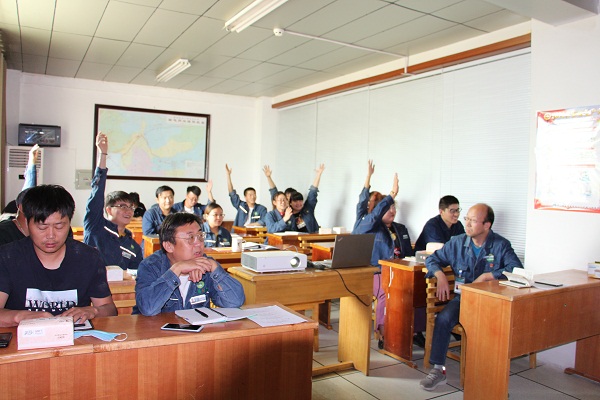 隨后,所安全員李燾同志又組織開展了安全知識競賽活動,知識競賽以口述問答與搶答形式進行,題目緊緊圍繞安全生產(chǎn)月主題,涉及知識面廣,內(nèi)容豐富,實用性強,現(xiàn)場選手們認(rèn)真對待每一題,搶答環(huán)節(jié),現(xiàn)場氣氛尤其激烈,分秒必爭,以答對題的數(shù)量選出答題最佳選手。