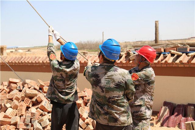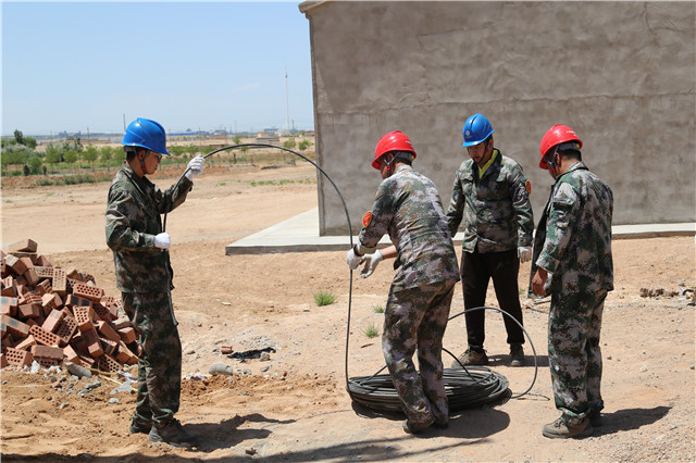 施工當(dāng)天烏海地區(qū)高溫來襲,施工難度陡增,六五四供電分局黨員突擊隊(duì)成員在三十五攝氏度的高溫下,頭頂烈日、腳踏電桿。按照分工干脆利落的進(jìn)行立桿、安裝橫擔(dān)、緊線等工作。經(jīng)過3個(gè)小時(shí)的作業(yè),終于順利地為此貧困戶送上電。貧困戶張占飛的母親非常激動(dòng)。“原先以為只是簡(jiǎn)單修一下,沒想到還需要這么多步驟,他們做得這么細(xì)致、這么認(rèn)真,真的是非常感謝他們。”