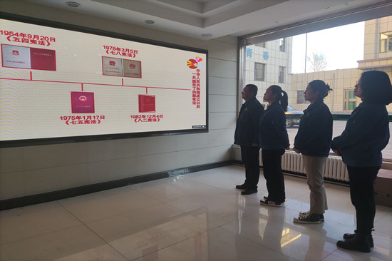 在第八個“12.4”國家憲法日來臨之際,該公司計劃于11月29日起,組織開展為期一周的2021年“12.4”國家憲法日暨憲法宣傳周活動。為營造良好的法治氛圍,該公司利用各類宣傳展架、門廳LED大屏滾動播放《憲法》等重要法律法規(guī)解讀動畫,并依托共產(chǎn)黨員服務(wù)隊成立6支“普法小分隊”,開展法律法規(guī)進(jìn)企業(yè)、進(jìn)機關(guān)、進(jìn)班組“三進(jìn)”普法活動,實行分眾普法、精準(zhǔn)普法。