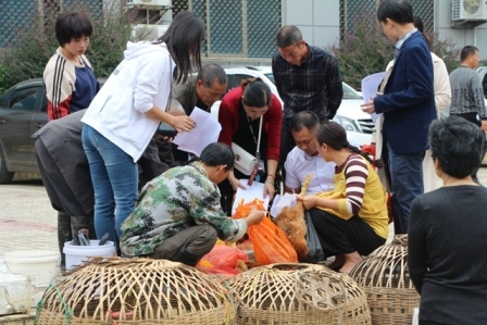 “這袋香米我要了,不要和我搶”,香米種植戶盧大哥的一袋袋大米還未從車上卸完,就被大家搶著訂購一空;“這筐香姜我要了,大爺快幫我裝袋稱重吧”,賣姜的陳大爺忙得不亦樂乎;“這只雞公好,我要了”···上午九時(shí),隨著該公司活動(dòng)指揮人員宣布現(xiàn)場購銷活動(dòng)正式開始,大家爭先恐后的圍到早早看中的農(nóng)產(chǎn)品攤前開始“搶購”,根本等不及農(nóng)戶們好好宣傳自己家的產(chǎn)品,一樣樣、一袋袋農(nóng)產(chǎn)品被熱情的采購者們“收入囊中”。現(xiàn)場采購活動(dòng)開始一個(gè)小時(shí)不到,農(nóng)戶們帶來的10多樣價(jià)值約3萬元的農(nóng)產(chǎn)品就銷售一空,同時(shí),還接受了預(yù)購訂單5000余元。