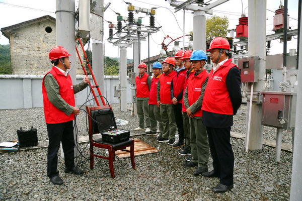 中國電力網(wǎng)訊 1月18日,在35千伏洞口變電站工作現(xiàn)場,國網(wǎng)樂安縣供電公司營銷黨支部組織各供電所營銷副所長對洞楓線發(fā)電上網(wǎng)計量裝置進行現(xiàn)場校驗。這是該公司全面加強黨建引領(lǐng),通過“黨建+”現(xiàn)場培訓(xùn)提升隊伍素質(zhì)的一個場景。