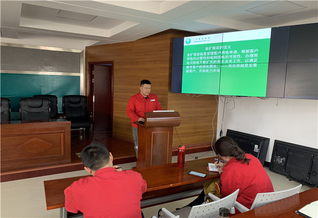 隨后,分局二級(jí)工程師劉福軍為大家?guī)砹艘?ldquo;配電網(wǎng)架空線路檢修及驗(yàn)收”為主題的生產(chǎn)技術(shù)課程,他主要對(duì)線路桿塔各項(xiàng)設(shè)備參數(shù)、具體安裝位置、安裝規(guī)范等技術(shù)問題進(jìn)行講解,同時(shí)針對(duì)學(xué)員提出的種種問題,進(jìn)行了詳細(xì)的解答,使全體青工對(duì)線路檢修及驗(yàn)收有了更深入地了解。緊接著,由分局用電檢查班青工郭介愚為大家講解了以“業(yè)擴(kuò)報(bào)裝”為主題的用電營(yíng)銷課程,他通過PPT結(jié)合實(shí)際案例的方式,深入淺出的講解了業(yè)擴(kuò)報(bào)裝具體流程及低壓供電方案的編寫,使分局青工營(yíng)銷業(yè)務(wù)能力有所提升。