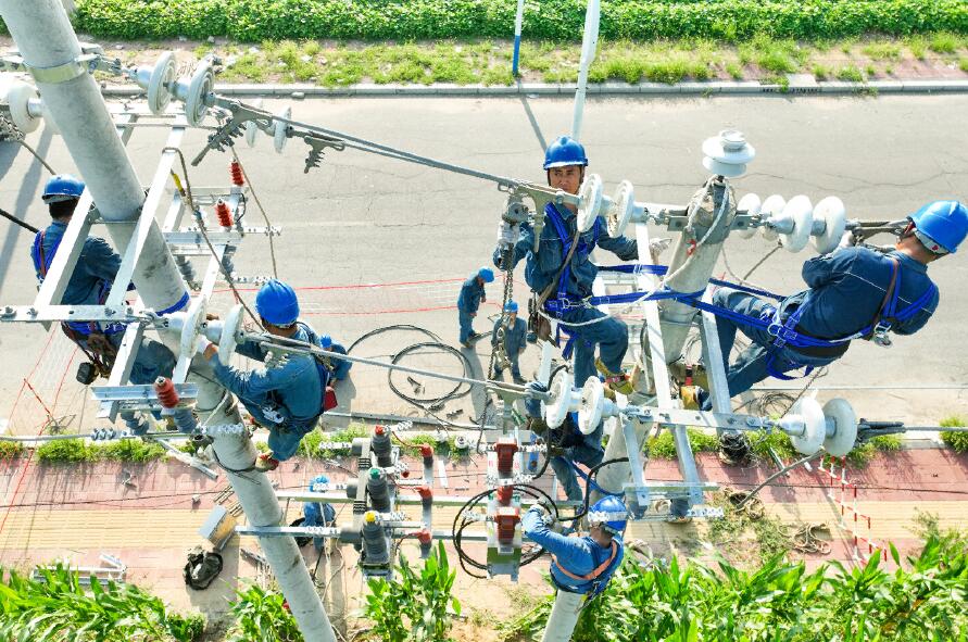 入夏以來(lái),持續(xù)的高溫天氣讓電網(wǎng)負(fù)荷面臨極大“烤”驗(yàn)。國(guó)網(wǎng)滑縣供電公司加快推進(jìn)電網(wǎng)升級(jí)補(bǔ)強(qiáng)、安全隱患治理等工作,切實(shí)提升電網(wǎng)運(yùn)行質(zhì)量和供電可靠性,為廣大用戶清涼度夏提供充足電力保障。當(dāng)天,在10千伏留賈線新建工程現(xiàn)場(chǎng),作業(yè)人員穿戴好全套安全防護(hù)用具,動(dòng)作熟練地爬上電桿,嚴(yán)格按照操作標(biāo)準(zhǔn)逐項(xiàng)完成接開(kāi)關(guān)引流線、安裝真空開(kāi)關(guān)等一系列操作。天氣炎熱加上施工作業(yè),工作人員的臉上很快就冒出了豆大的汗珠,他們顧不得擦去,只專注于手中的操作。他們從早上6:30分開(kāi)始,經(jīng)過(guò)6個(gè)多小時(shí)的揮汗奮戰(zhàn),12:25分,10千伏留賈線路運(yùn)成功,為附近村民生產(chǎn)生活用電提供堅(jiān)強(qiáng)電力能源保障,確保“清涼”度夏。