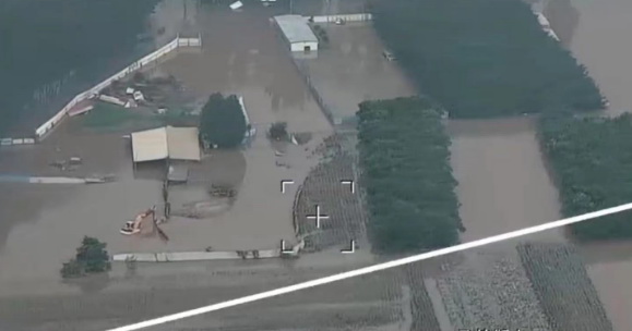 國網(wǎng)空間技術公司無人機傳回的涿州受災畫面。(程海濤)