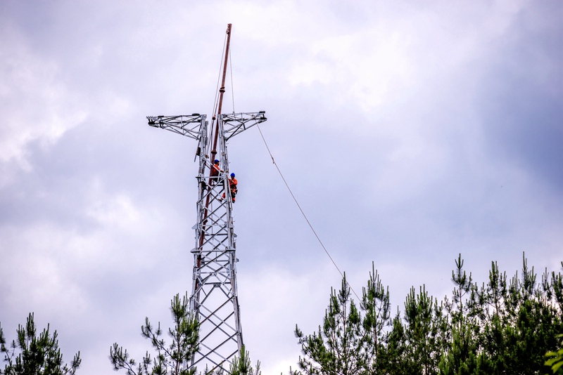 中國(guó)電力網(wǎng)訊 6月10日,室外氣溫高達(dá)28攝氏度,在四川省巴中市通江縣陳河鎮(zhèn)下江口村10社,國(guó)網(wǎng)通江縣供電公司施工人員有序開展涪陽(yáng)變電站一河壩1井線路15號(hào)鐵塔組立工作。據(jù)了解,國(guó)網(wǎng)四川省巴中市通江縣供電公司積極服務(wù)地方經(jīng)濟(jì)發(fā)展,開辟供電服務(wù)綠色通道,從報(bào)裝申請(qǐng)、供電方案確定等方面提供優(yōu)質(zhì)高效的“一條龍”辦電服務(wù),為重點(diǎn)項(xiàng)目建設(shè)提供用電保障。程聰攝