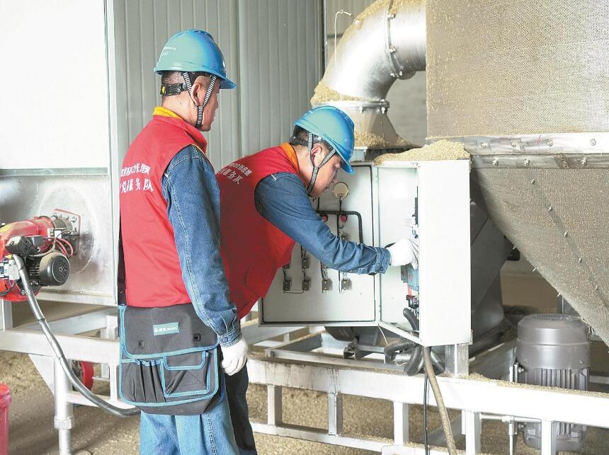6月1日凌晨,在鄠邑區(qū)渭豐街道真守村,臺(tái)區(qū)經(jīng)理常小勇和同事為一臺(tái)27千瓦烘干機(jī)通上了電。這臺(tái)烘干機(jī)隨即開(kāi)啟24小時(shí)連續(xù)作業(yè)模式,開(kāi)足馬力烘干真守村農(nóng)業(yè)合作社剛剛收割的小麥,解決此前連續(xù)陰雨天造成的曬糧難問(wèn)題。
