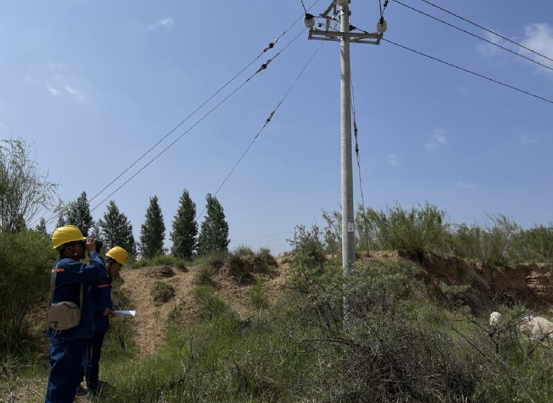 “夏天巡線,除了熱和行走不便,巡線途中,被蜜蜂蟄,被蚊子咬,都是家常便飯。”行進過程中,供電所人員盧文龍說。從供電所出發(fā)到巡線地點,出城區(qū),走山坡,行駛了30多分鐘后,巡線人員到達了110千伏商混變942沙龍廟線第一基桿塔,開始了當天的徒步巡線工作。“這條線路距離市區(qū)比較遠,這邊的用電客戶多以農耕為生,現在這個時候正是用電高峰期,所以我們要去檢查一下線路設備是否存在隱患和缺陷。”青春山供電所副所長王鵬邊走邊解釋說。盧文龍拿出紅外線測溫儀,對準正在運行的線路及金具進行測溫并仔細記錄溫度變化情況;王鵬舉起望遠鏡,仔細檢查桿塔和設備的運行情況。在每一根電桿前,他們都要從不同角度多方位觀察,轉角桿、導線接點、拉線挨個查看。手持儀器的胳膊要在每一處檢測點懸停一段時間,以確保數值的準確性,連續(xù)十幾根電桿下來,胳膊和手腕就開始發(fā)酸發(fā)漲......這條線路避開了人員密集區(qū),有些地方找不出一條像樣的路,車開不上去就只能靠步行前往。炎炎烈日下,王鵬和盧文龍邊查邊改,對現場能夠處理的隱患及時處理,不能處理的隱患記錄在冊,納入整改計劃,確保及時消除處理,并詳細記錄線路運行情況,做好分析總結工作,確保巡視取得實效。