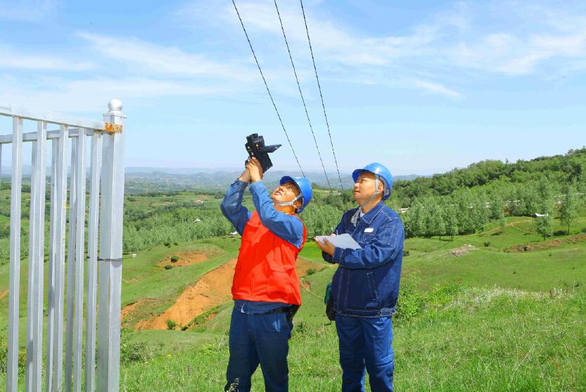 國網臨夏供電公司鐵寨供電所員工楊志凌和馬仲明為云上河州康養(yǎng)基地電力設施進行巡視、測溫