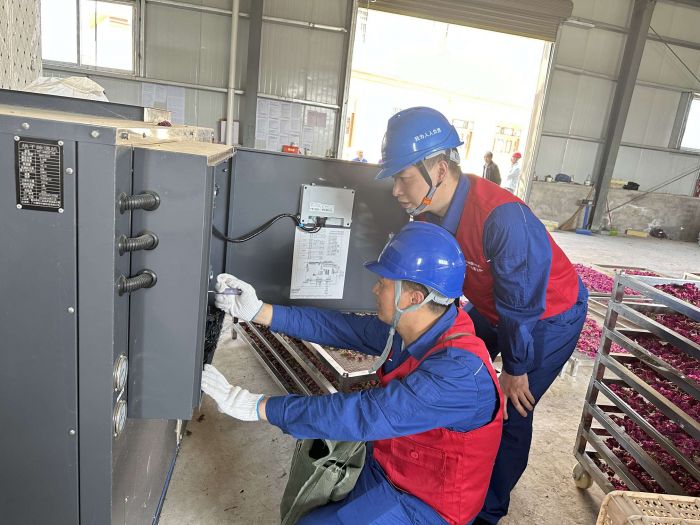 職工幫助鄉(xiāng)村企業(yè)檢查用電設(shè)備