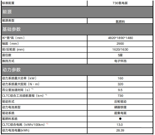 氫電版續(xù)航里程這里也標(biāo)注的很清楚,它是一款續(xù)航能達(dá)到730km的氫能源電動車,車身尺寸和純電及增程版本保持不變。同樣也采用了后驅(qū)布局,并且匹配和增程式車型一樣的28.39kWh動力電池,換句話說就是氫燃料版車型將增程式車型用于發(fā)電的發(fā)動機替換為用于發(fā)電的氫燃料。而氫燃料相比發(fā)動機而言最大的優(yōu)勢則在于排放更環(huán)保、噪音控制更好,以及未來的使用成本上。