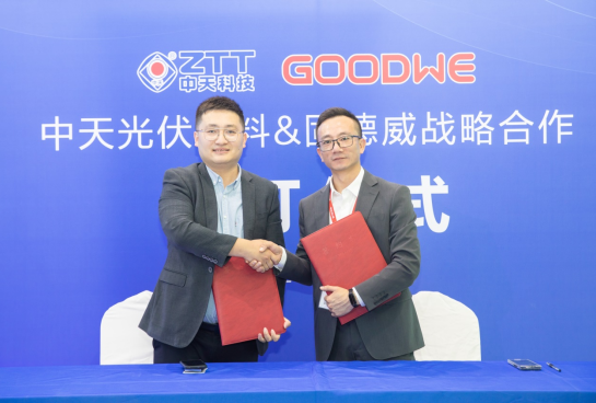 展會(huì)現(xiàn)場(chǎng),中天科技與固德威電源科技簽訂戰(zhàn)略合作協(xié)議,在新能源業(yè)務(wù)系統(tǒng)解決方案、資源開發(fā)等方面進(jìn)一步深化合作,實(shí)現(xiàn)優(yōu)勢(shì)互補(bǔ)、共贏發(fā)展。